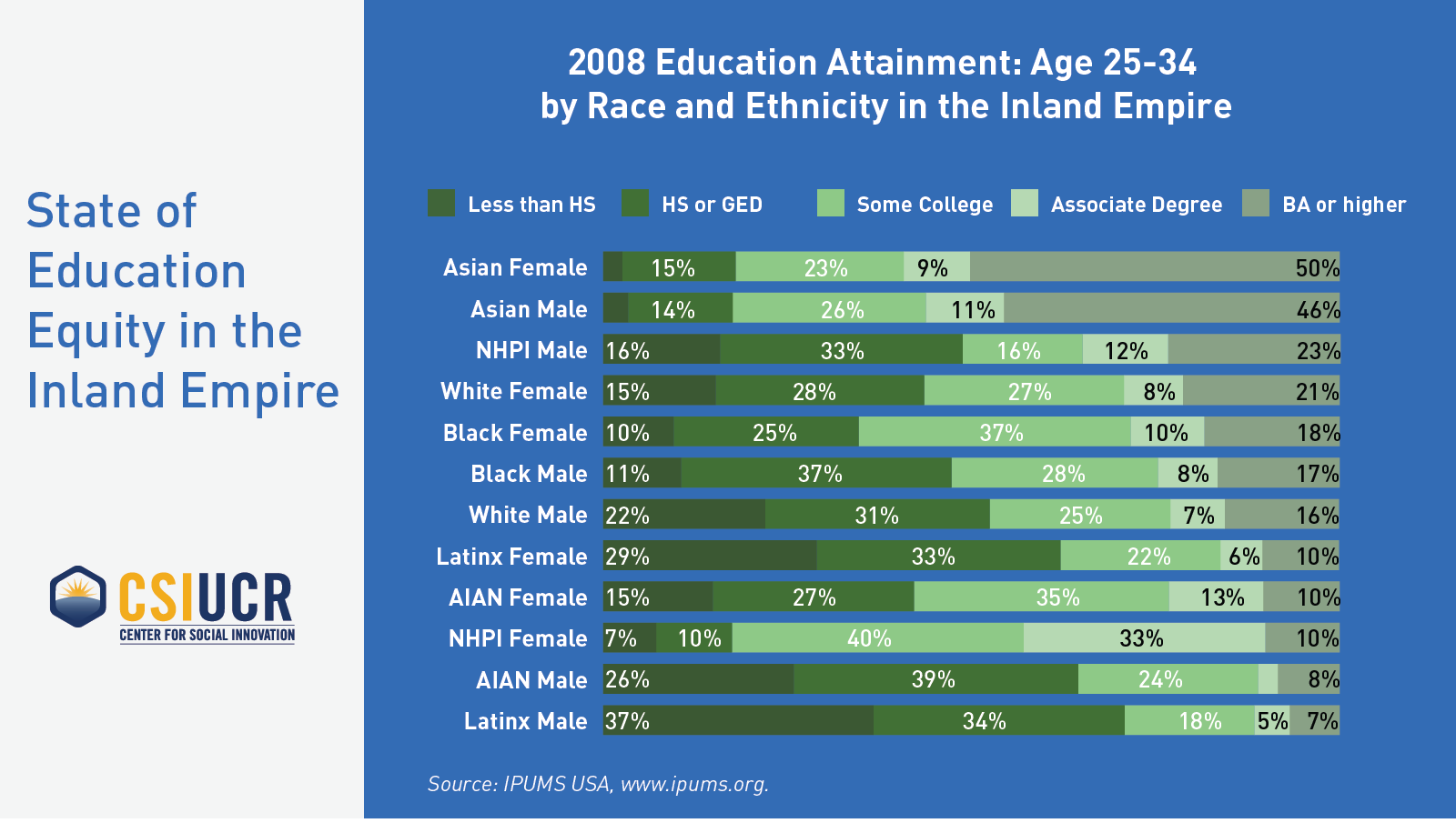 2008 Education Attainment: Age 25-34 by Race and Ethnicity in the IE