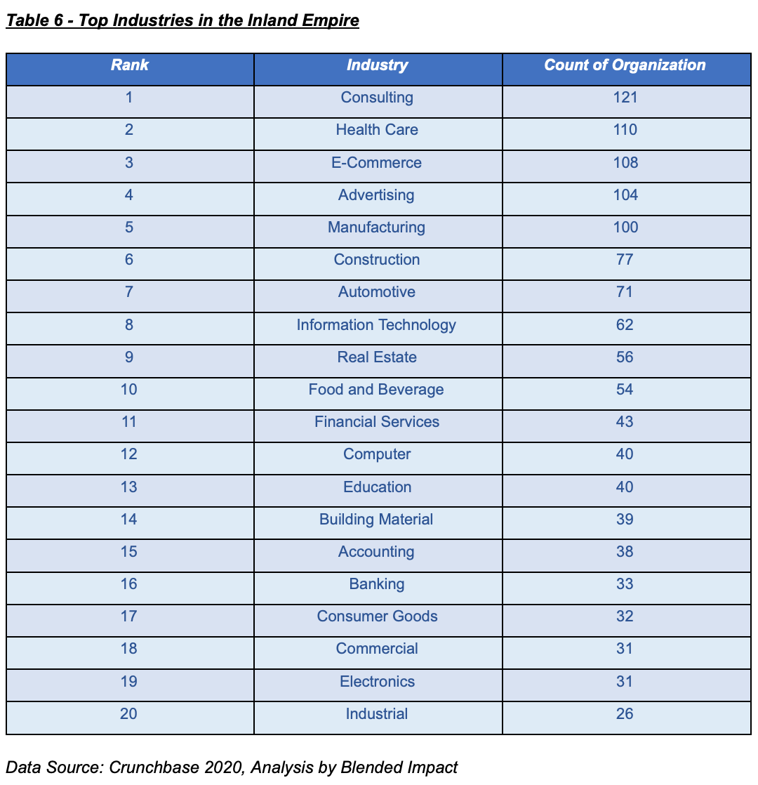 Table 6 - Top Industries in the Inland Empire